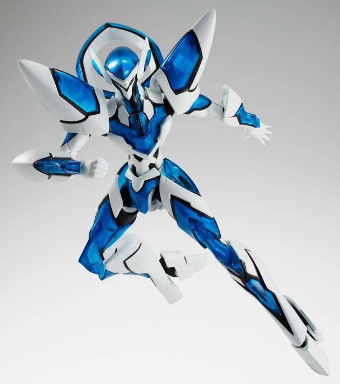 The super robot piloted by the hero of “Back Arrow” joins THE ROBOT SPIRITS! Finished in distinctive blue and white coloring, with crystalline detail replicated using translucent parts, its natural posability allows you to re-create your favorite scenes from the show. Also includes effect parts based on the powerful attacks seen onscreen.