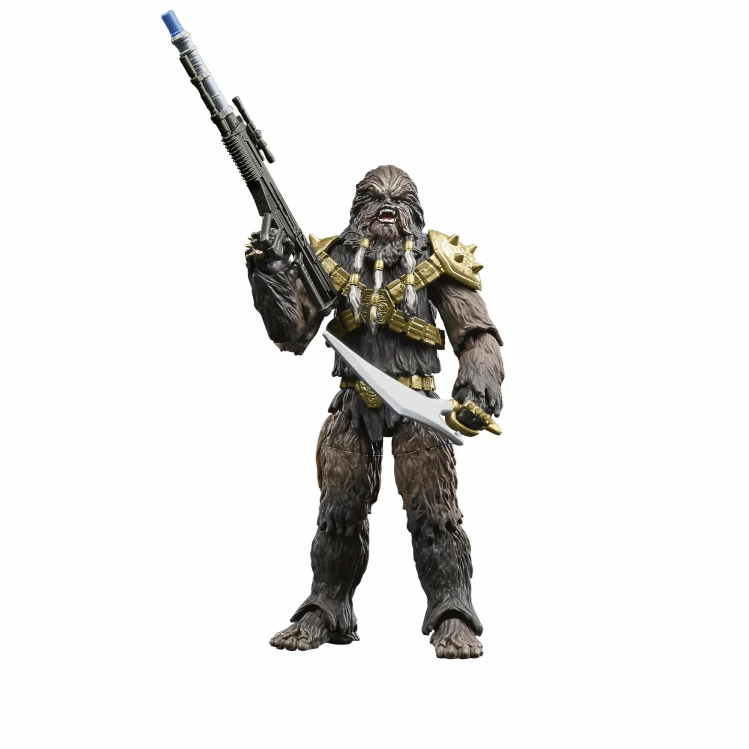 A former gladiator turned deadly bounty hunter, Krrsantan is a towering black-furred Wookiee who made a name for himself in the criminal underworld with his intimidating presence and raw strength.