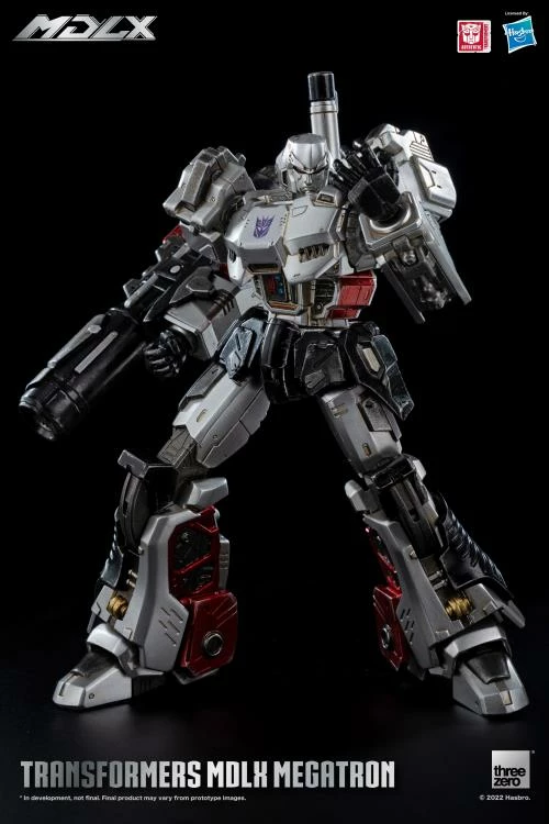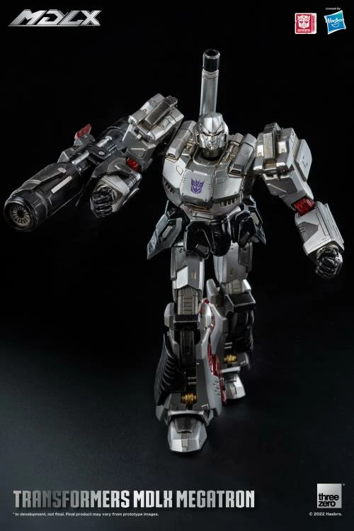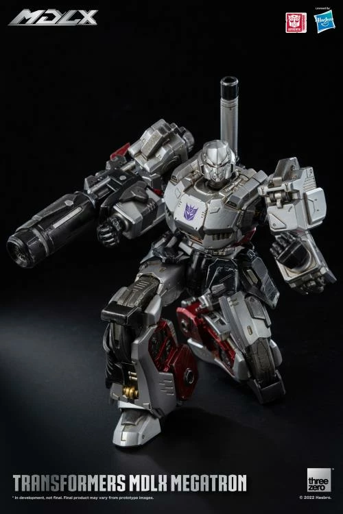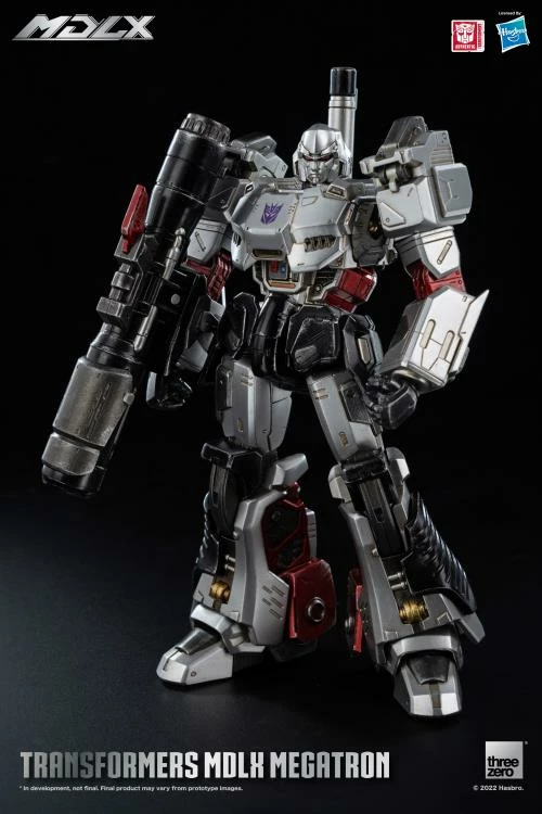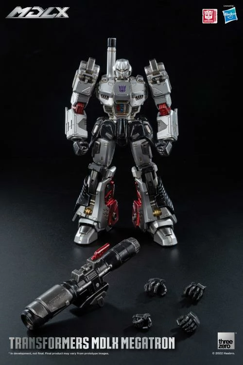 Transformers – MDLX Megatron is approximately 7 inches tall, with approximately 45 points of articulation and a die-cast metal frame. Accessories include one fusion cannon, one back cannon, and four sets of interchangeable hands.