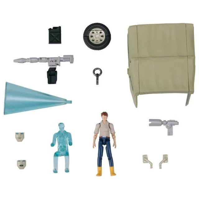 Hound also brings from the G1 cartoon many signature parts he’s known for including his telltale hologram gun, Gas tank, alternate face plates and many more accessories! Best of all his hologram gun includes a hologram ray attachment and clear spike figure so that you can recreate scenes from the G1 cartoon. Finally he includes a removable roof part/canopy.